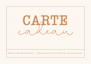 Avec la carte cadeau Flow massage, vous pouvez au choix choisir le soin qui fera plaisir à votre proche ou choisir une enveloppe / un montant qui permettra à votre proche de choisir lui même le soin dont il souhaite bénéficier.